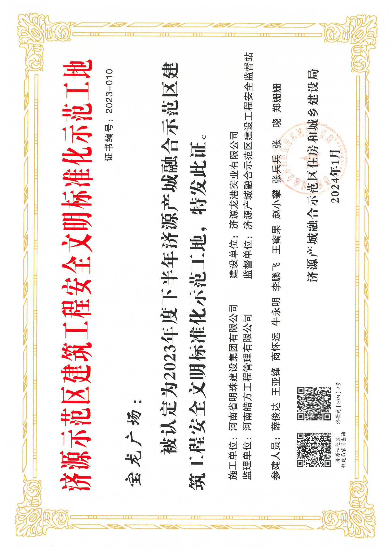 2023年度下半年濟(jì)源建筑工程安全文明標(biāo)準(zhǔn)化工地
